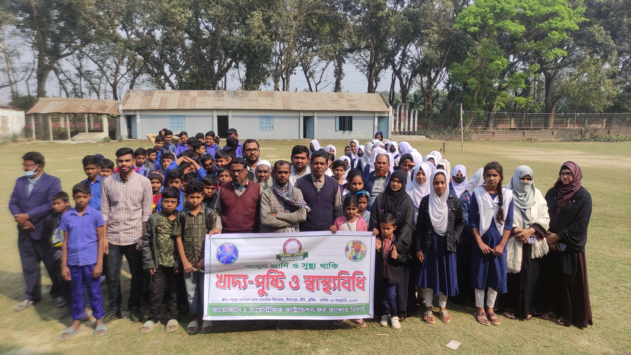 সায়েন্টিফিক ফাউন্ডেশন ফর ক্যান্সার রিসার্চ” এর উদ্যোগে “সুস্থ দেহ সুন্দর মন, কর্মব্যস্ত সুখী জীবন” এই প্রতিপাদ্যকে সামনে রেখে মধুপুর হোদিরোন নেসা মাধ্যমিক বিদ্যালয়, ঈমানপুর, কুষ্টিয়াতে “খাদ্য-পুষ্টি ও স্বাস্থ্যবিধি” নামে একটি স্বাস্থ্য সচেতনতামূল সেমিনারের আয়োজন করা হয়। উক্ত সেমিনারে অত্র স্কুলের
